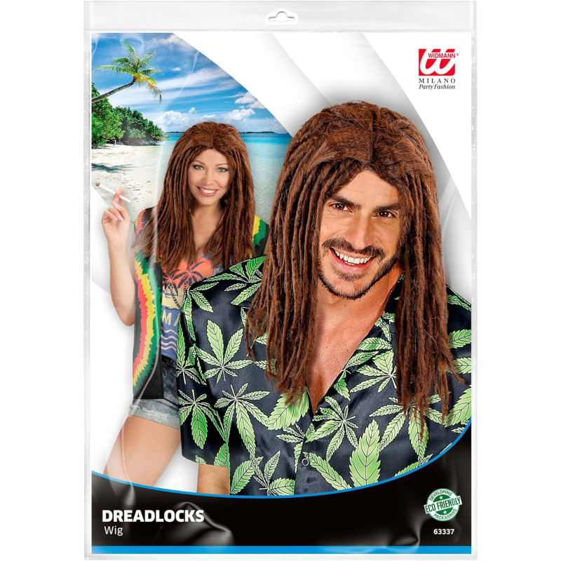 Brown dreadlocks wig. Material: 100% polyester. Hand wash, bleaching not allowed, do not dry in drier, do not iron, do not dry clean.