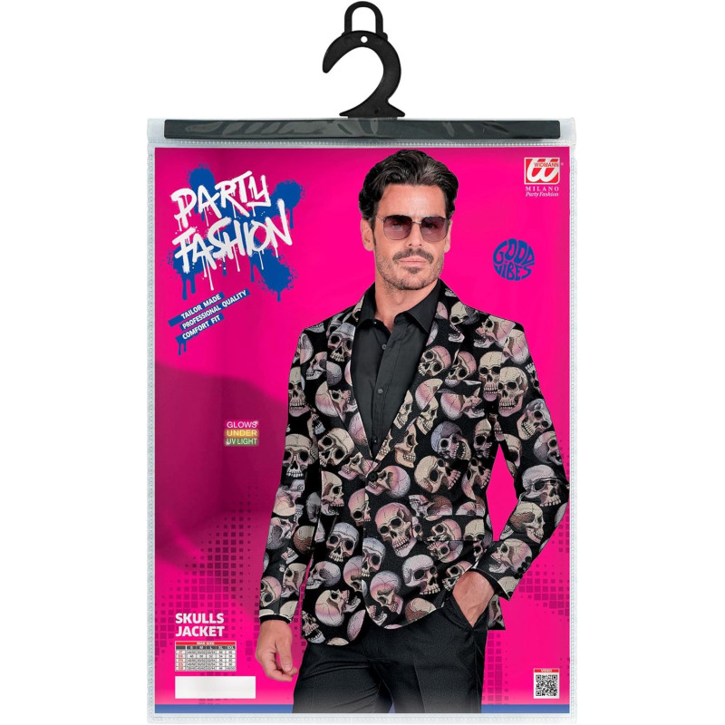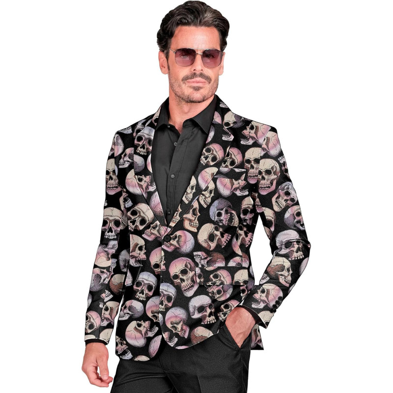 Men's Skull Pattern Blazer - Bold & Stylish Elevate your sartorial elegance with this distinctive men's blazer. Adorned with a bold skull pattern, this jacket embodies the perfect blend of contemporary fashion and edgy style. Ideal for those who wish to make a stylish statement at parties or special events, this blazer is crafted with precision to ensure an impeccable fit and finish.