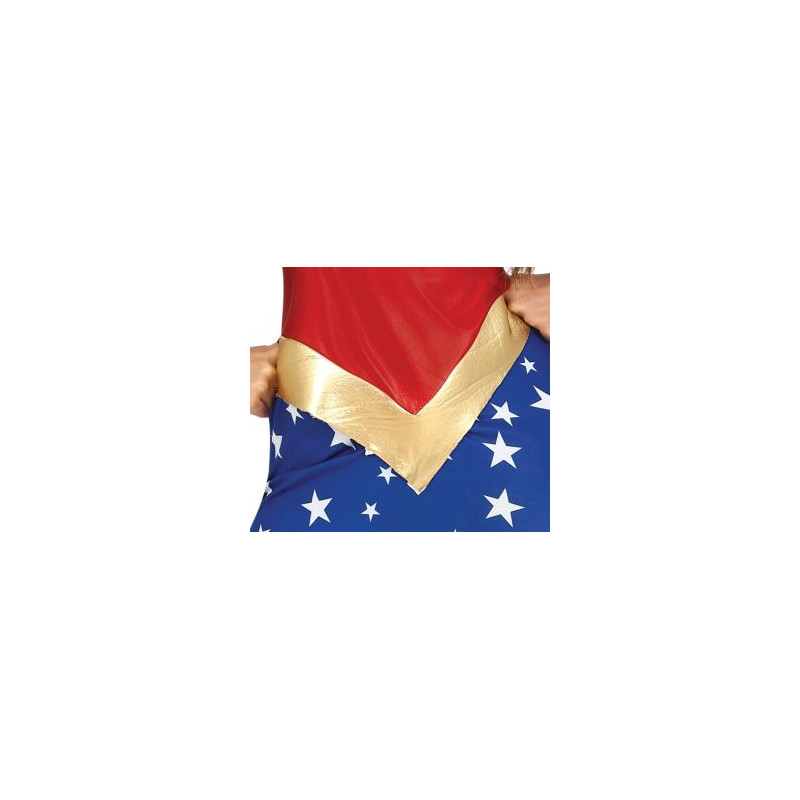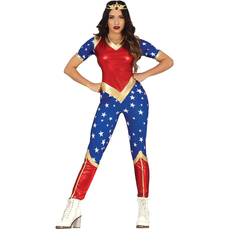 CONTENTS of Super Star Hero Costume: Jumpsuit. NOT INCLUDED: accessories. • MATERIALS: This USA American Hero fancy dress is made of polyester and conforms to all safety standards • : a great choice for your fancy dress or super heroes theme party