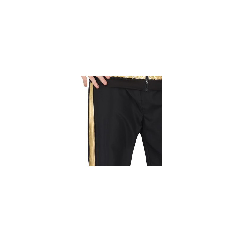 CONTENTS of this metallic gold tracksuit mens fancy dress costume: Jacket, Trousers. NOT_INCLUDED: Golden Cap, Further 90s Accessories • MATERIALS: These fancy dress costumes for men are made of 100% polyester and meet all safety standards so that you can have a great time at your next costume party. • adult fancy dress costumes men: a great choice for your fancy dress or theme party