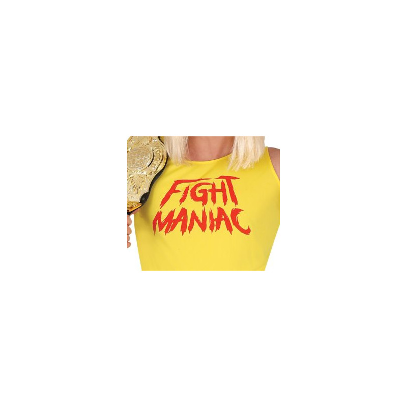 CONTENTS of this fight maniac mens fancy dress costume: Scarf, T-Shirt, Belt, Trousers, Boot Covers. NOT INCLUDED: Glasses, Wrestling Champion Belt