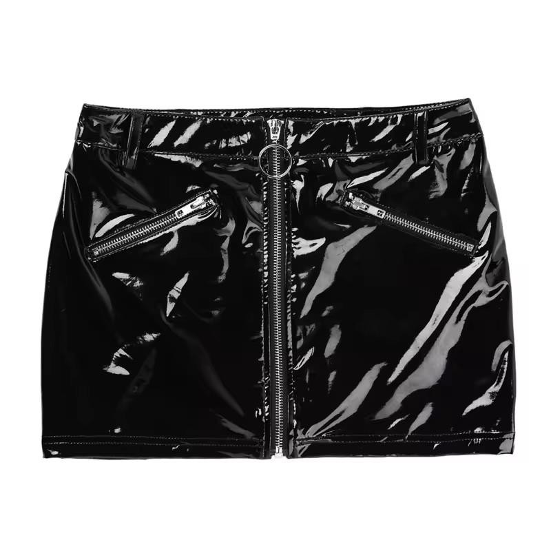 Women's faux leather bodycon mini skirt, shiny and solid color.