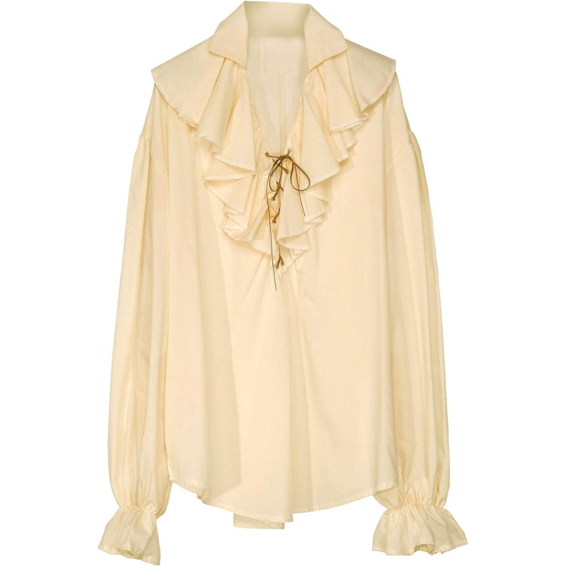 Do you want to trump up at carnival or at the most pirate party as a dreaded sea, but still add fashionable accents. Then this shirt that attracts attention with beautiful ruffles is the right piece of clothing for you. The ruffles bounce on the sleeve ends and on the collar of the pirate shirt for men.