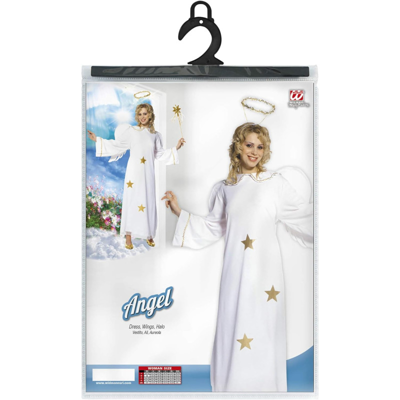 Angel costume for women includes dress, wings and halo. Dress material: 100% polyester.