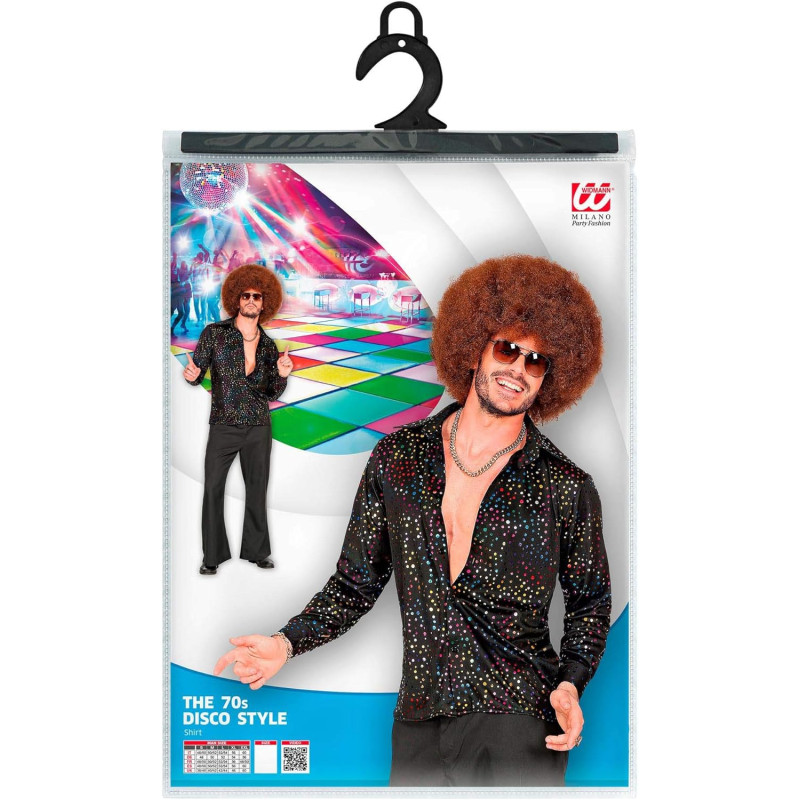 Stylish shirt for men in trendy disco style. The shirt is designed in the eye-catching black color with colorful marbles. The collar and long sleeves provide an authentic look. Put yourself back into the sparkling world of disco balls with this shirt and conquer the dance floor.