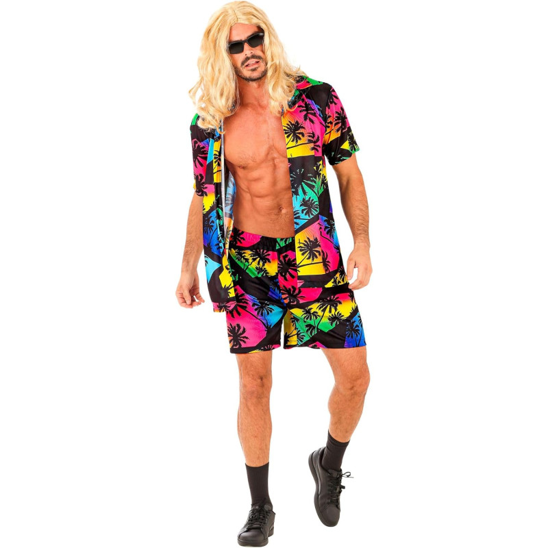 With this set you will get the ideal outfit for your Hawaiian party. Costume includes both Hawaiian shirt and shorts. Both garments are decorated with palm trees at sunset.