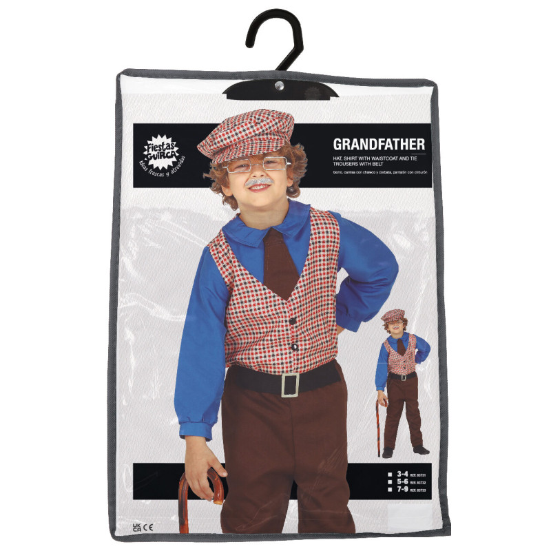 The costume includes: hat, shirt with suspenders, pants with belt.