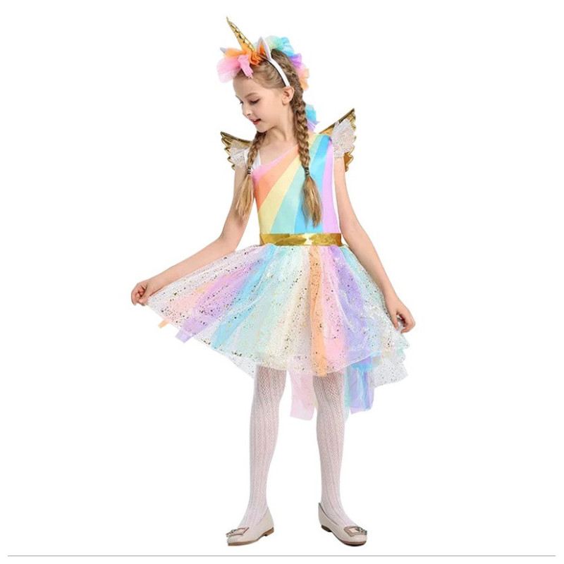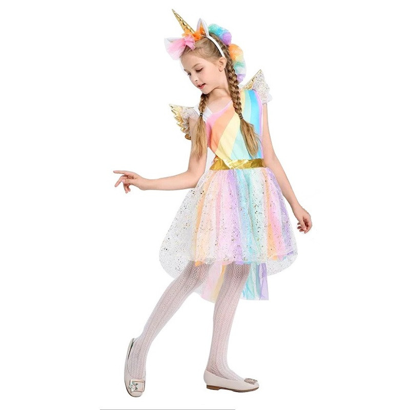 Unveil the magic with this captivating unicorn costume, featuring a vibrant blend of pastel hues and exquisite detailing. This attire is ideal for sparking imagination, fostering creativity, and is perfect for special occasions such as themed parties, Halloween, and school events. Your child will radiate charm and fantasy in this beautifully crafted ensemble, designed to transport them to a world of wonder and enchantment.