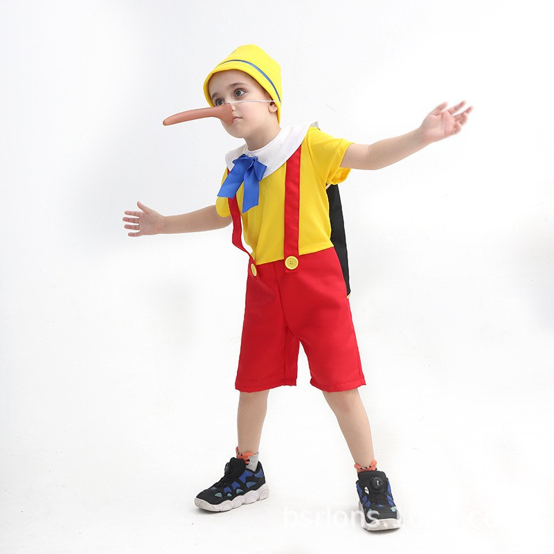 Enhance your child's imaginative play with this meticulously designed Pinocchio character costume. Ideal for themed events and festive occasions, this outfit features vibrant colors and detailed craftsmanship, ensuring an authentic appearance. Let your child's creativity and storytelling flourish with a costume that embodies the beloved wooden puppet's charm and whimsical spirit.