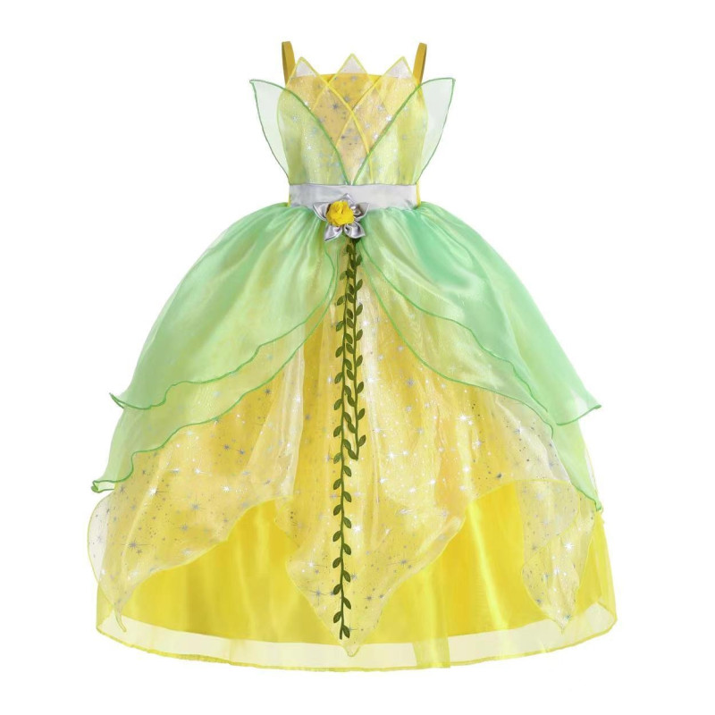 This exquisite Princess Costume Dress is designed to enchant and delight. Featuring a stunning combination of ethereal green hues and delicate yellow undertones, it captures the essence of timeless elegance. Perfect for various occasions, this dress provides a regal and enchanting aesthetic, making every child feel like true royalty. Its intricate design and high-quality materials ensure both comfort and durability, promising a magical experience with every wear.