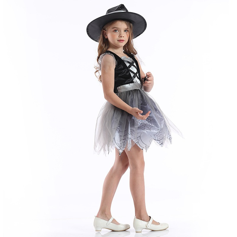 Spider witch costume for girls is a perfect choice for Halloween, carnival, themed parties and school events. This girls’ Halloween costume features an elegant black and grey color combination with delicate spider web patterns that create a magical and slightly spooky look.