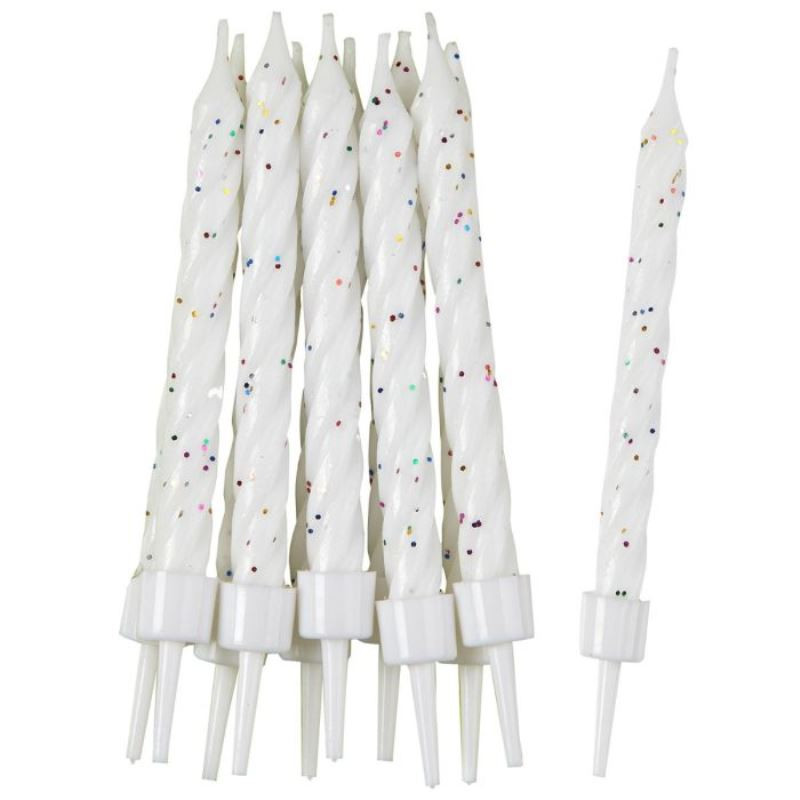 White birthday candles, 10 pcs. (with plastic holders)