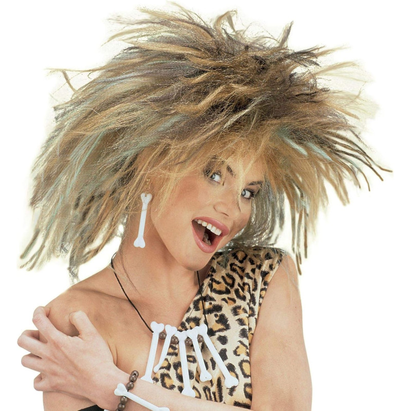 Koopanaise parukas. See on kiviaja parukas. Juuksed on üleannetud ja metsikult sätitud. Ideaalne soeng neandertallase kostüümide jaoks. Materjal: 100% polüester. Käsipesu, pleegitamine keelatud, mitte kuivatada kuivatis, mitte triikida, mitte keemiliselt puhastada.