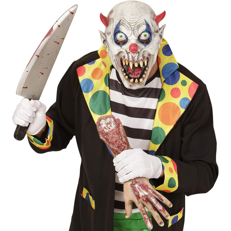 See hirmutavalt realistlik klounimask on meisterlikult valmistatud, et tekitada hirmu ja põnevust. Selle täpne disain ja õõvastavad omadused teevad sellest suurepärase valiku igaks õudusteemaliseks sündmuseks, tagades, et te eristute ja jätate unustamatu mulje. Ideaalne kõigile makabrihuvilistele ja neile, kes soovivad teha julge avalduse.