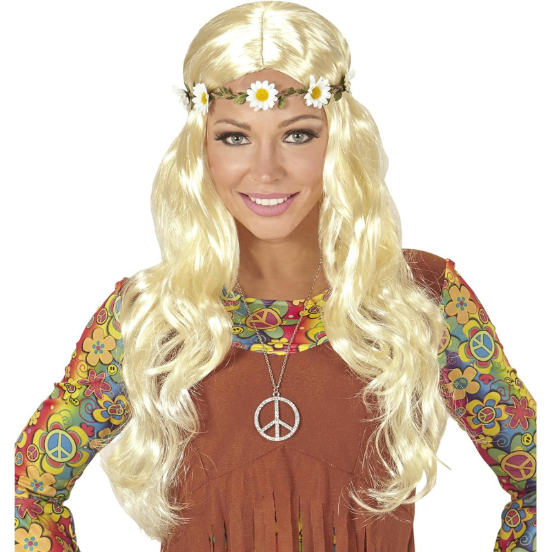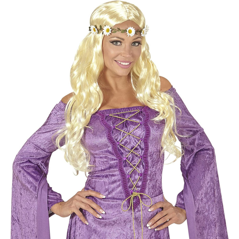 Blond „Hippie / keskaegne parukas karikakra peapaelaga”. Karnevaliks ja muudeks puhkudeks. Materjal: 100% polüester. Käsipesu, pleegitamine keelatud, mitte kuivatada kuivatis, mitte triikida, mitte keemiliselt puhastada.
