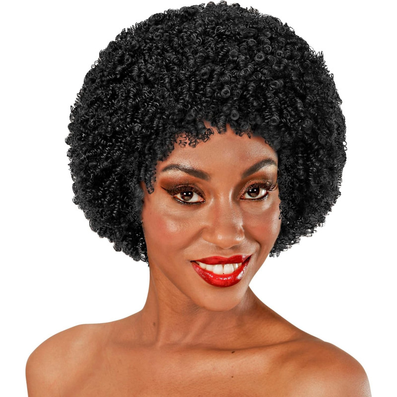 70ndate diskostiilis must parukas. Materjal: 100% polüester. Käsipesu, pleegitamine keelatud, ärge kuivatage kuivatis, ärge triikige, ärge keemiliselt puhastage.