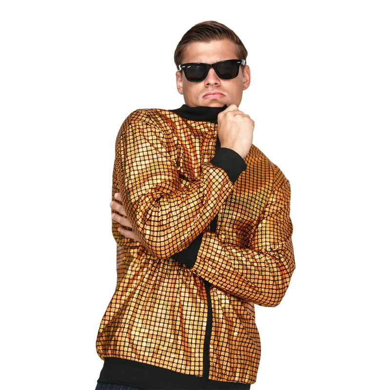 Õhuke kuldse värviga "Bomber" stiilis jakk disko stiilis.