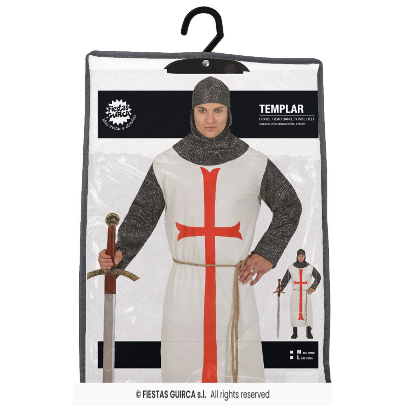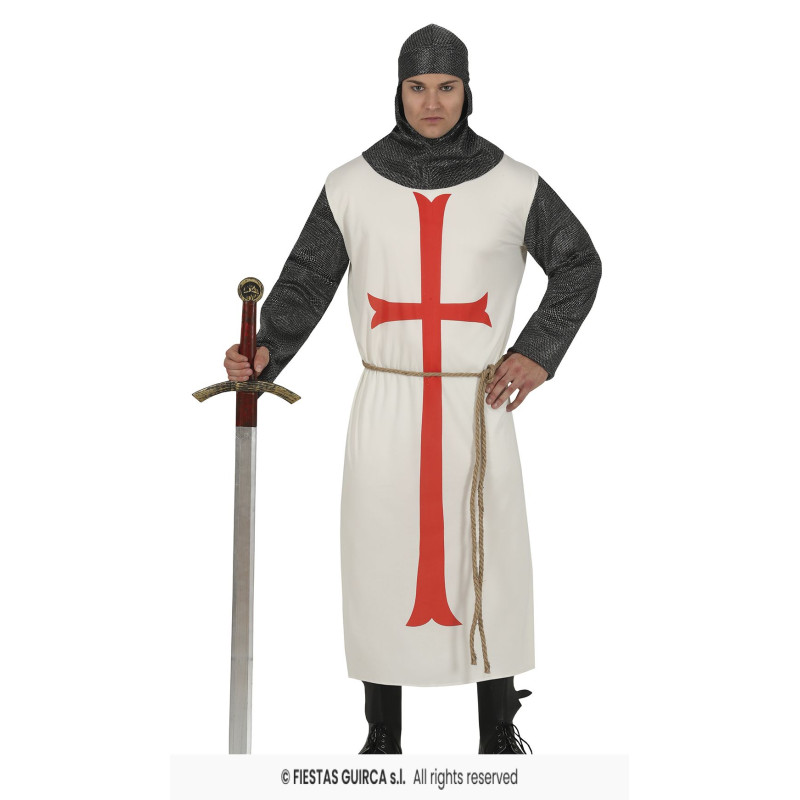 Templar Knight täiskasvanute kostüüm: autentne tunic, mantel ja vöö komplekt, mis on loodud jäljendama keskaegsete templirüütlite stiili. Suurepärane valik neile, kes soovivad erilist ja ajaloolist välimust.