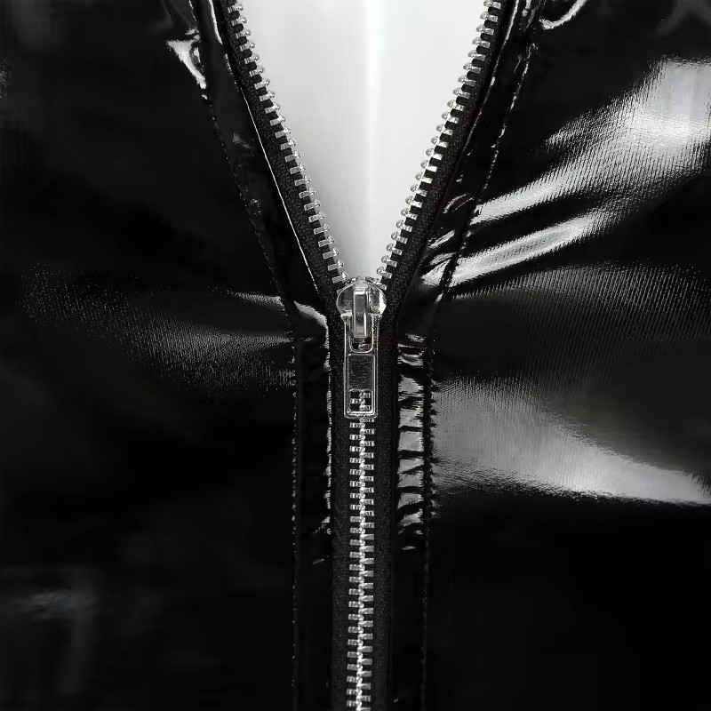 Läikiv välimus, lühikesed varrukad, reguleeritava pandlaga kõrge kaelus.