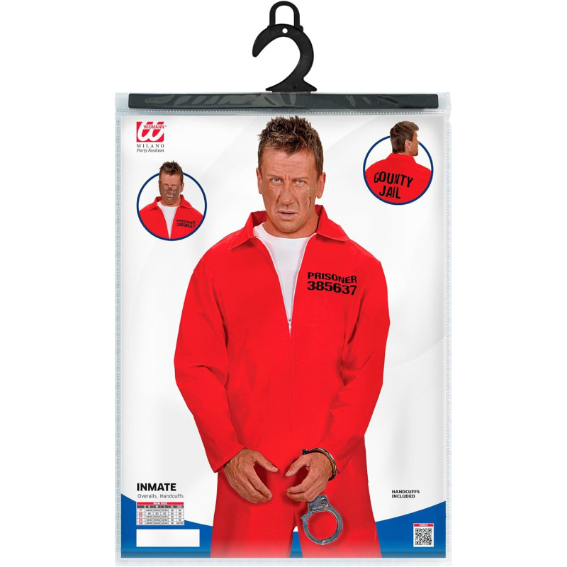 Muutu tõeliseks vangiks selle kostüümiga. Komplekti kuuluvad silmapaistev punane kombinesoon kraega ja käerauad veenva vangi välimuse jaoks. Vasakul rinnakõrgusel olev kiri „385637 Prisoner” ja seljal „COUNTY JAIL” täiendavad kostüümi visuaalselt ideaalselt. Kombinesooni esiosas olev tõmblukk muudab selle selga panemise ja ära võtmise lihtsaks.