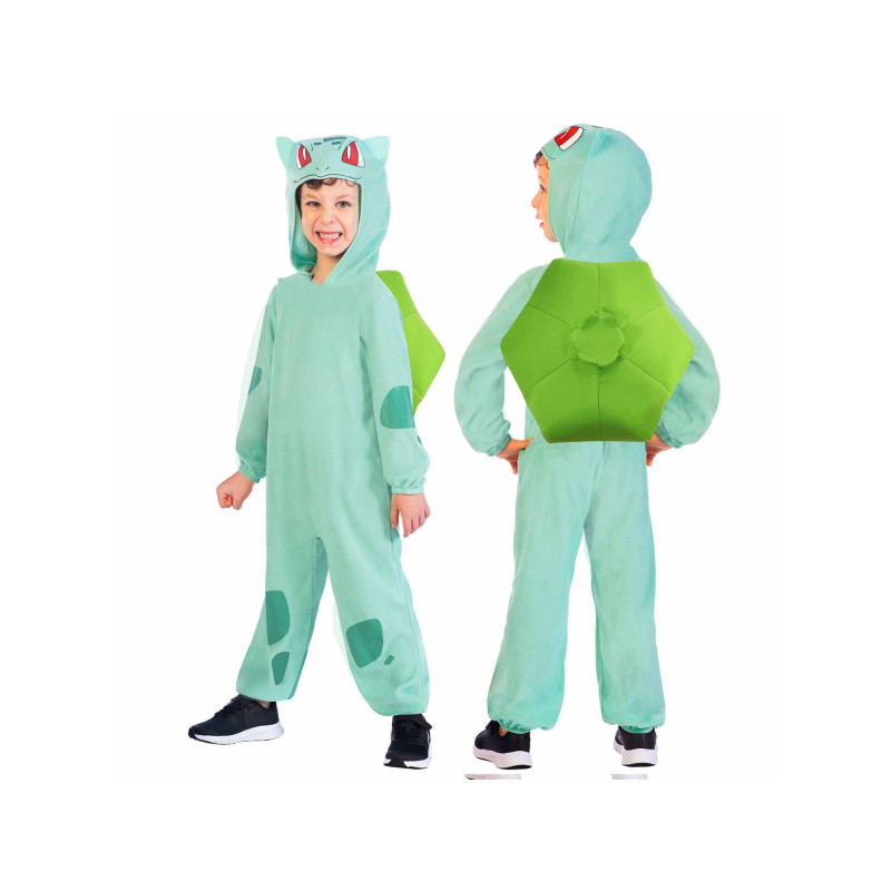 Pokemon Bulbasaur kostüüm lastele, koosneb mugavast kombinesoonist koos kapuutsi ja kõrguva "sibulaga". Suurepärane valik väikestele Pokémoni fännidele, kes soovivad seiklustesse sukelduda!