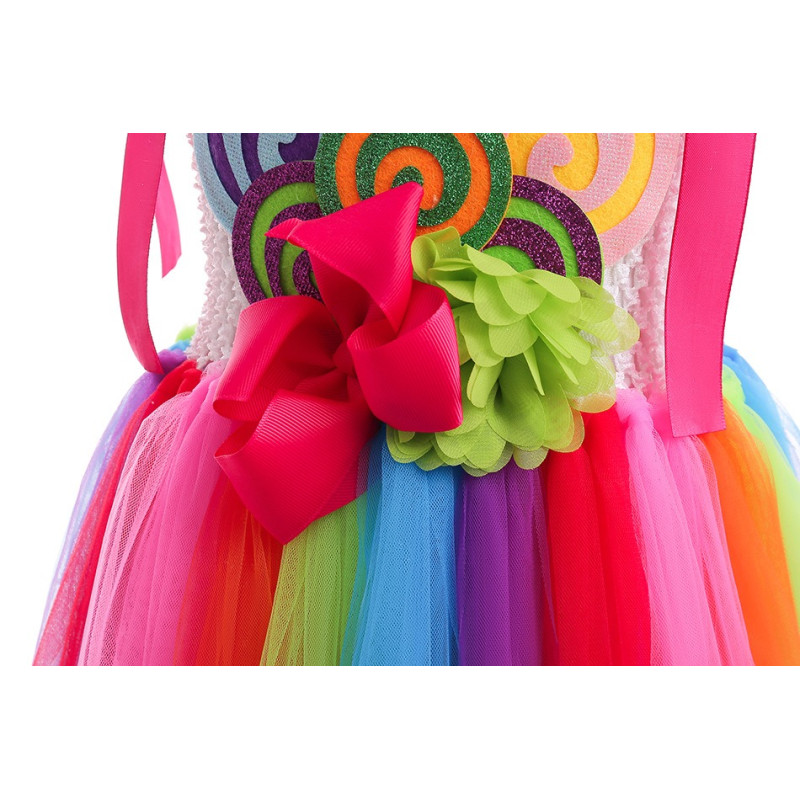 Avasta võluv Vikerkaar Tutu Kleit, mis on valmistatud kauni värvide valikuga, et luua silmatorkav visuaalne külgetõmme. See kleit paistab silma oma elegantse tülli ja võluvate paelaaktsentidega, muutes selle ideaalseks valikuks lisamaks natuke fantaasiat igale pidulikule sündmusele.