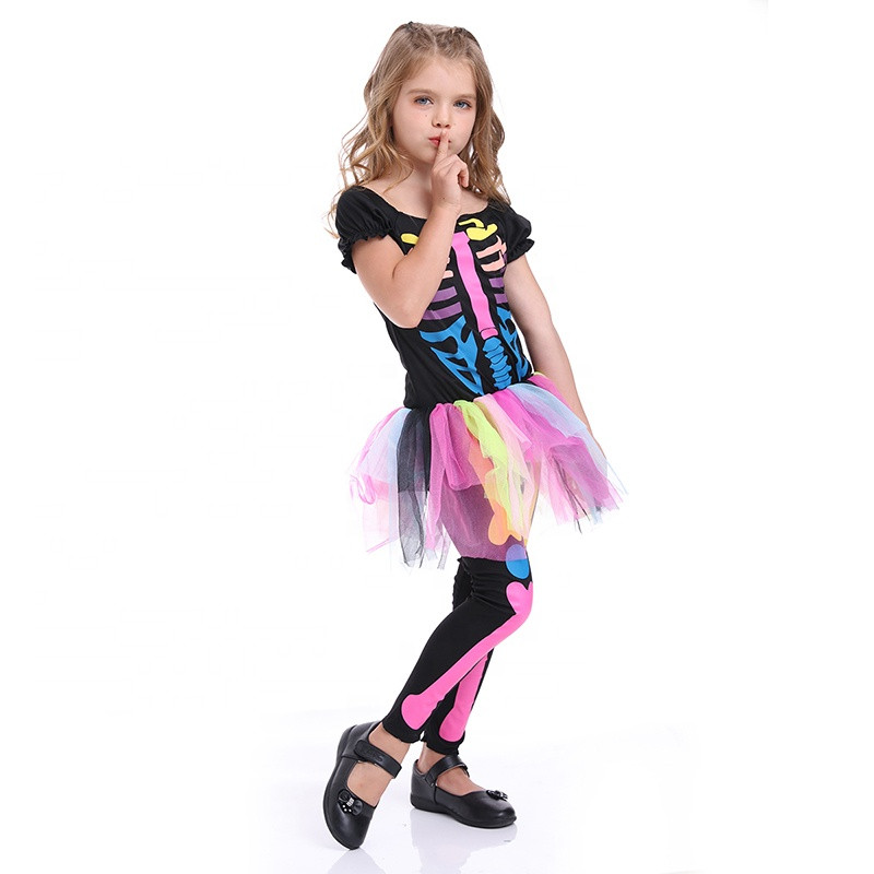 Värviline skeletikostüüm tüdrukutele