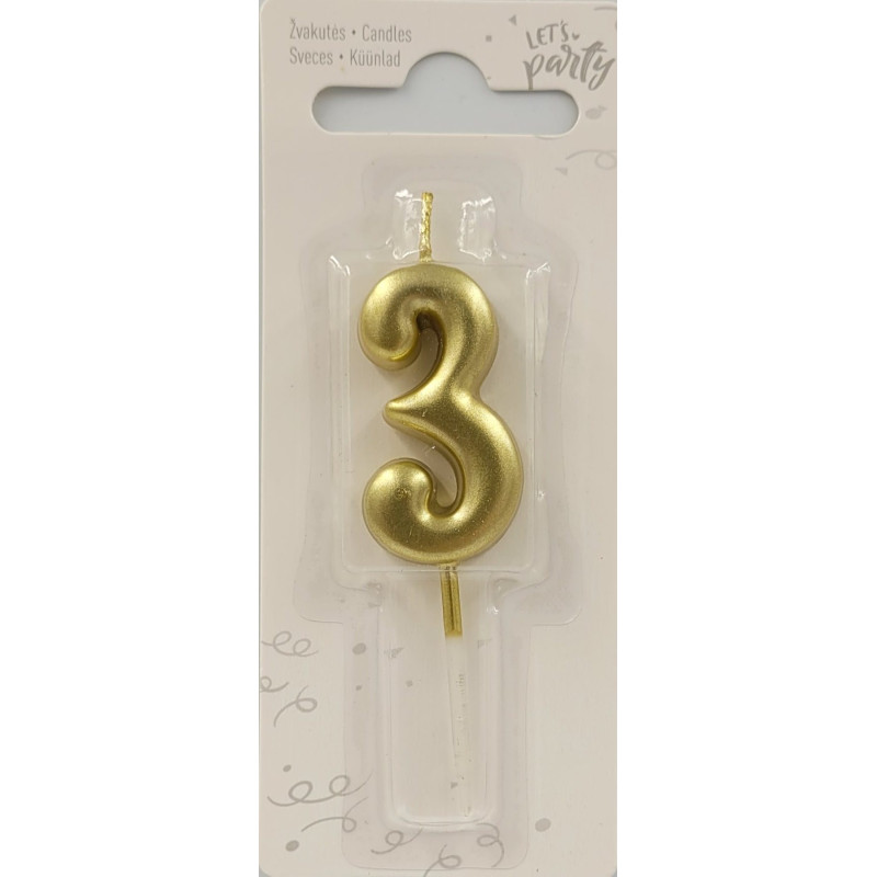Sünnipäevaküünal number 3 kuldne värv, 1 tk.