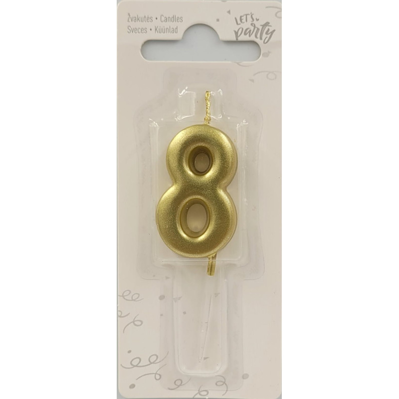 Sünnipäeva küünal number 8 kuldne värv, 1 tk.